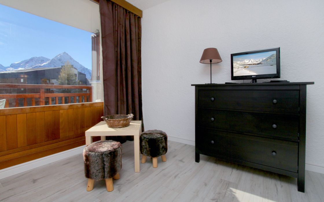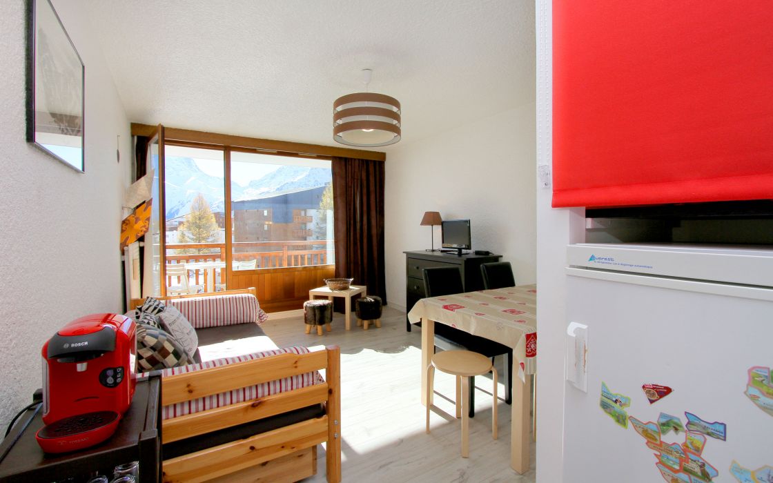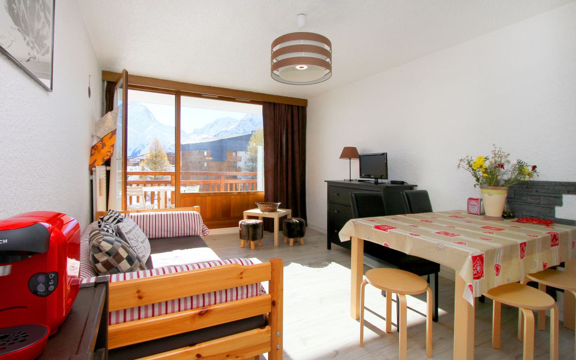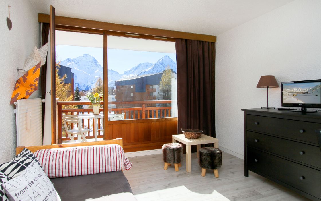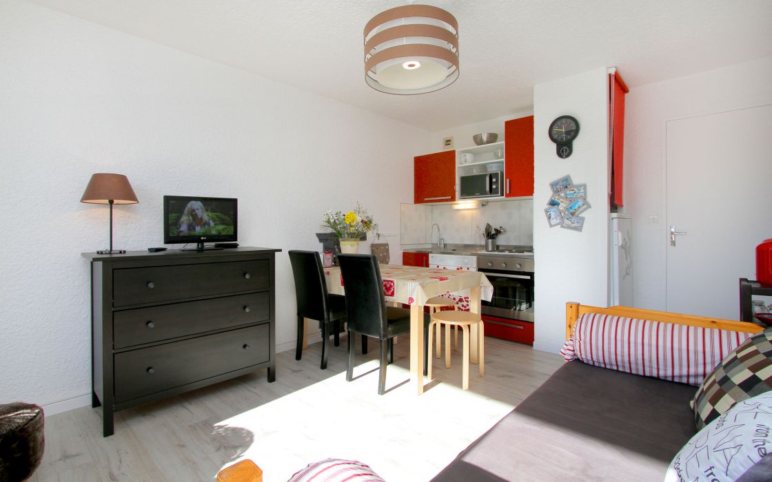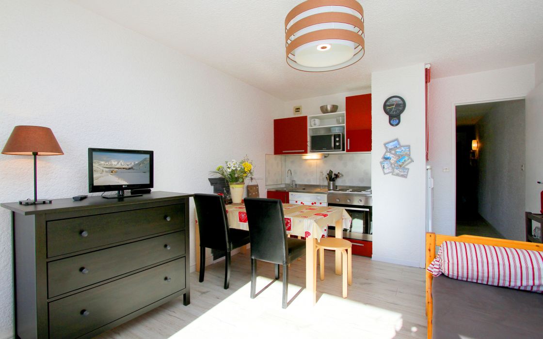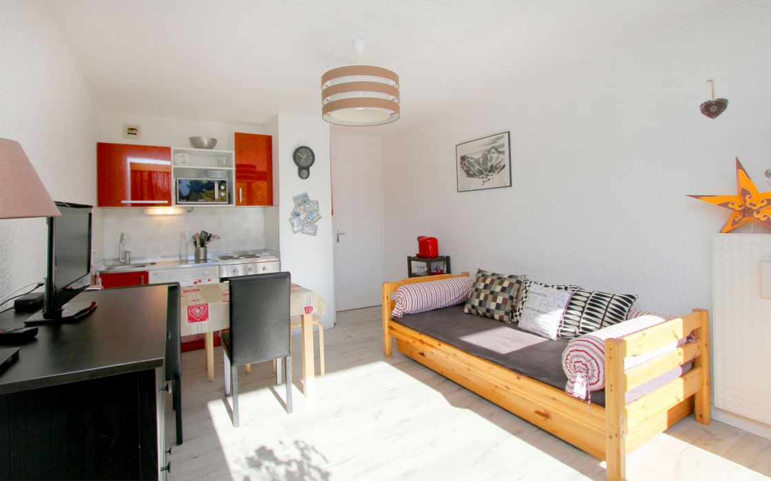 Studio en centre station, résidendence le Meijotel. Aux pieds du Jandri Express, et des départs Ecole de Ski. Composé d'un coin nuit, d'une pièce de vie, d'une salle de bain et d'un WC indépendant.