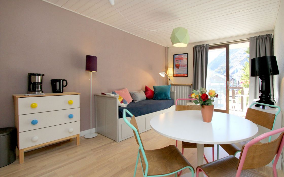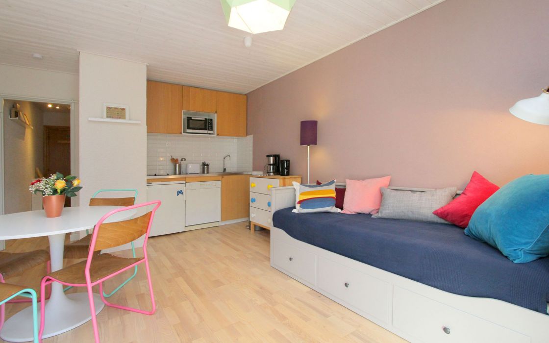 Au pied du télésiège du diable, copropriété en pied de pistes. A 10 mn à pied des rassemblements ESF de cote brune. Un studio avec pièce de vie, 2 couchages dans le cliclac. 2 couchages dans le coin montagne. Une salle de bain et WC séparé. ATTENTION: parking de copropriété souvent saturé, en période de forte affluence il se peut de devoir se stationner sur la voirie qui devient payante sur toute la station à partir du 1/12/2024!