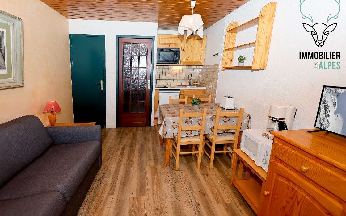 Studio idéalement situé, pied de piste, à moins de 5 minutes des écoles de ski.