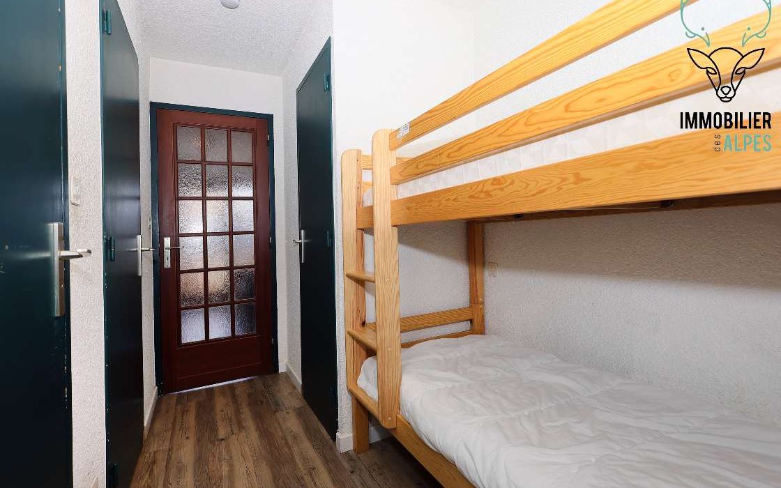 Composé d'une lumineuse pièce de vie avec sa cuisine, d'un coin montagne avec lits superposés séparé du séjour par une porte, d'une salle de bain et d'un WC séparé.