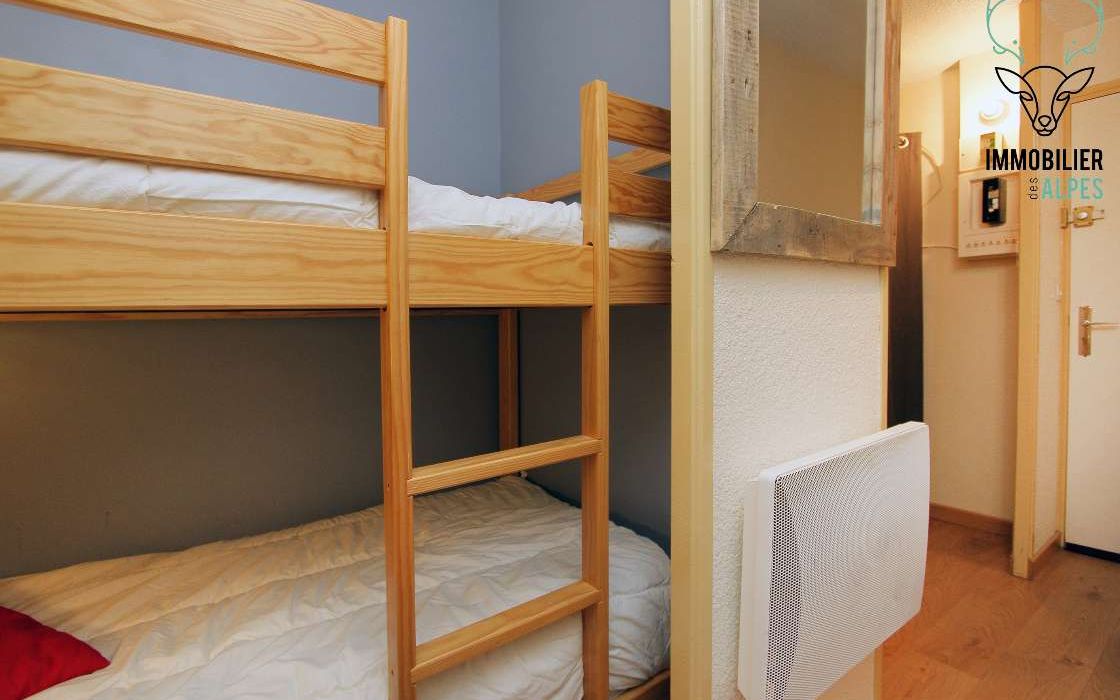 Situé dans le secteur Venosc, au pied des pistes et à seulement 100m du télésiège du diable, il est composé d'un coin rangement dans l'entrée avec rideau, d'une coin montagne avec lits superposés, d'une cuisine équipée avec séjour donnant sur un balcon exposé EST avec vue sur les pistes.