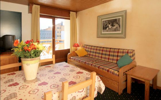 Studio idéalement situé, pied de piste, à moins de 5 minutes des écoles de ski.