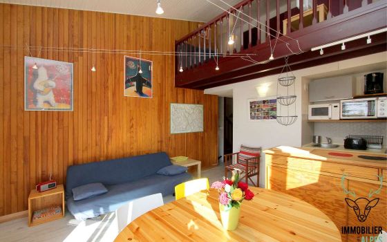 Appartement de 60m² idéalement situé au centre de la station, proche des commodités (commerces, ecole de ski), il est composé d'une chambre avec 2 fois 2 lits superposés, d'une salle de bain avec baignoire, un WC indépendant et une cuisine équipée ouverte sur le séjour.