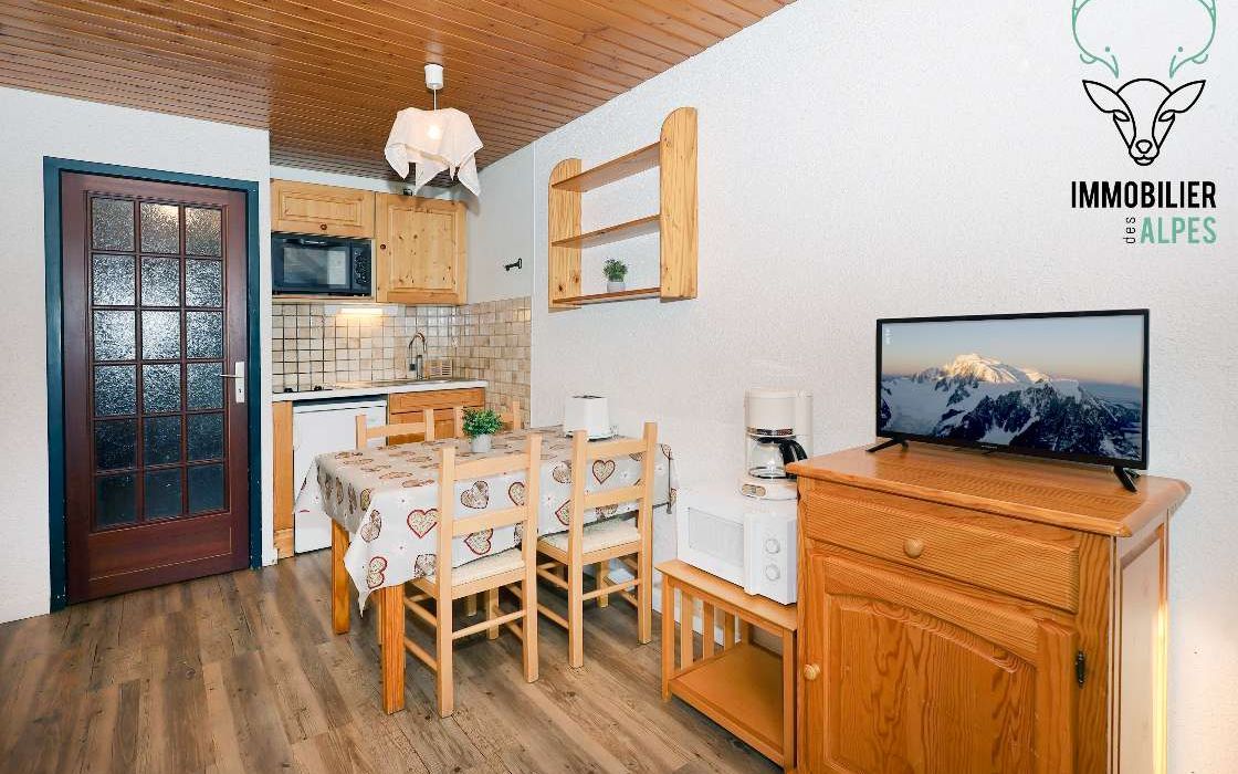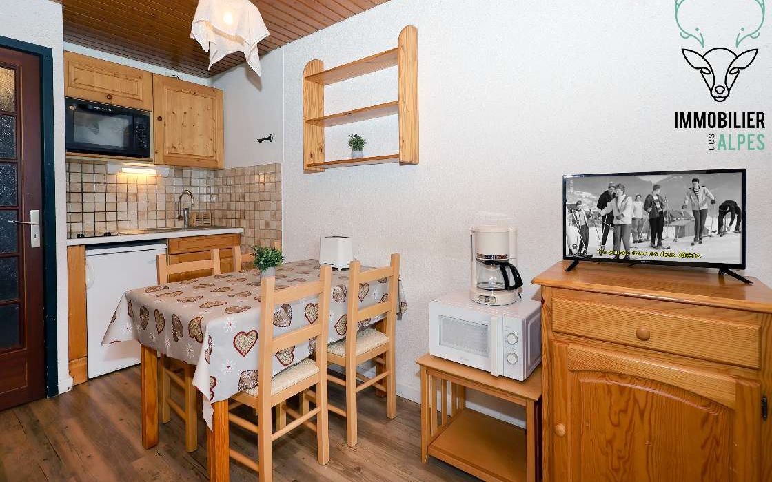 Studio idéalement situé, pied de piste, à moins de 5 minutes des écoles de ski.