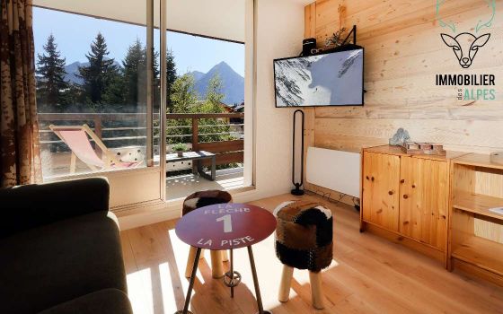 Studio d'environ 27m² composé d'un hall avec lits superposés, rangement, salle de bain avec baignoire et wc séparés.séjour avec convertible 2 personnes. coin cuisine aménagée avec four, micro-ondes, réfrigérateur, plaques de cuisson, lave-vaisselle.balcon sud télévision. 2ème étage avec ascenseur. parking avec barrière magnétique. casier à skis au sous-sol.